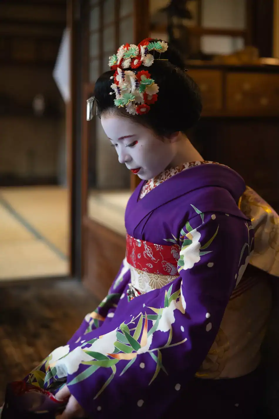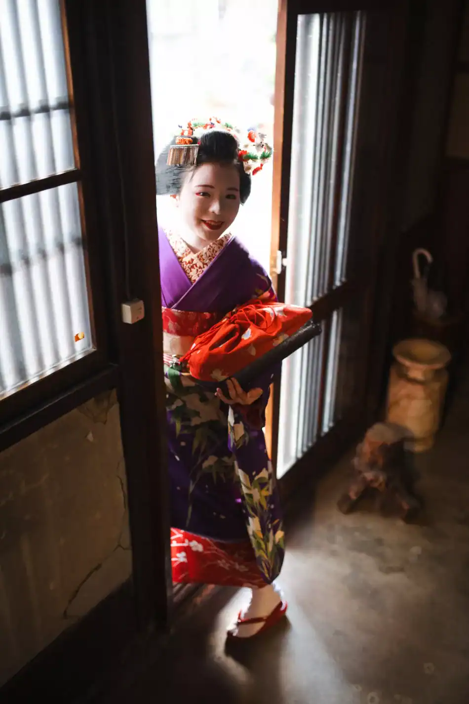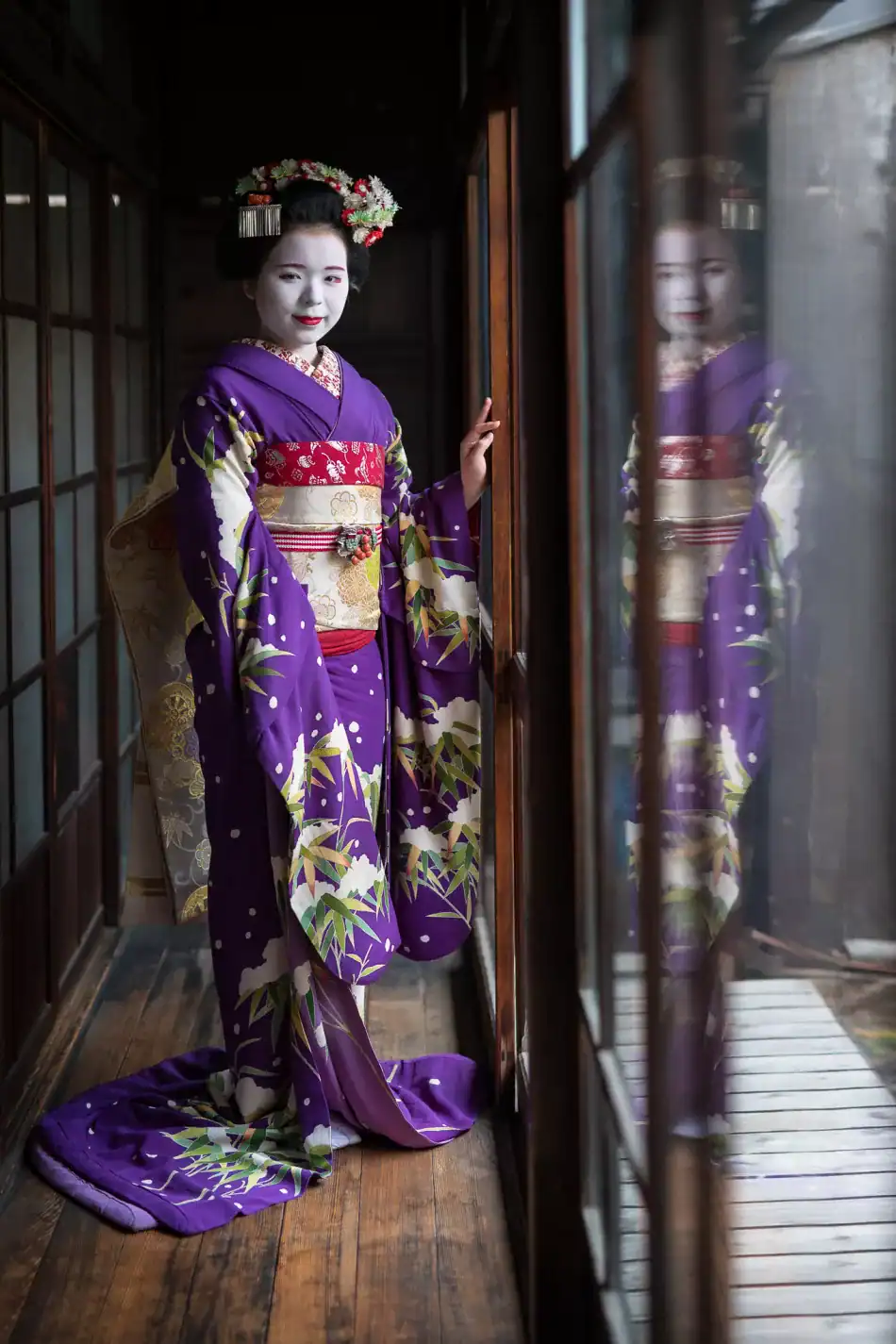 Standing at the window of the machiya, she turned her face ever so slightly, letting the diffused sunlight gather in her eyes. When she moved, she flowed like water, as if her body was formless beneath the layers of her purple furisode. The train of her kimono spread at her feet like a fan; this too was not a mere coincidence, but a seemingly effortless attention to her appearance and posture. This was my first personal interaction with a Kyoto geisha, and without saying a word, she had already taught me volumes.