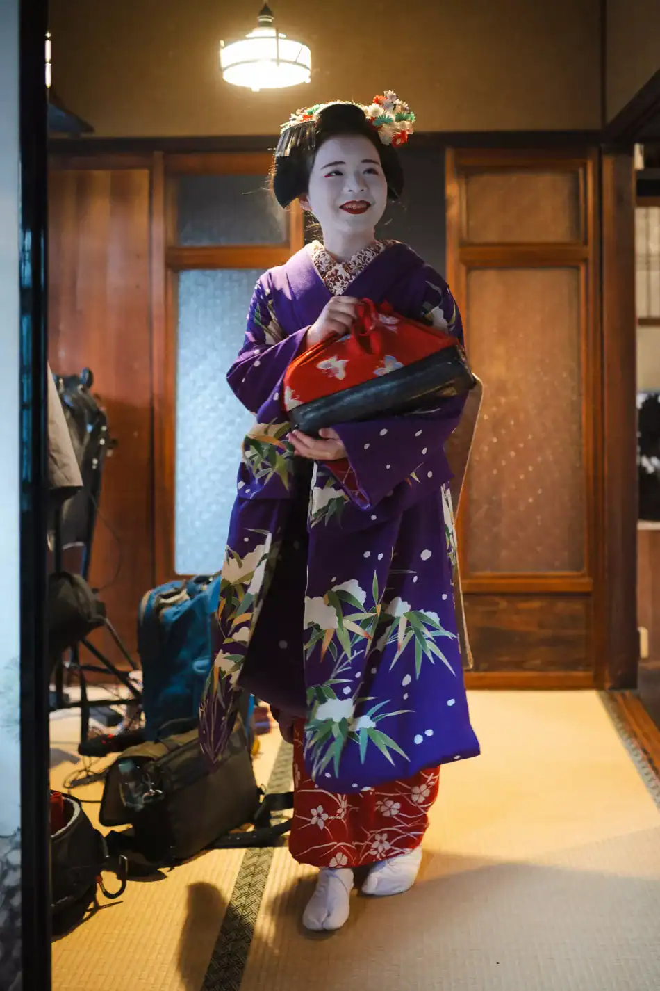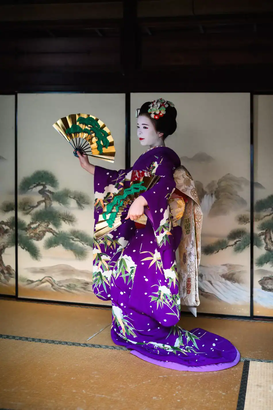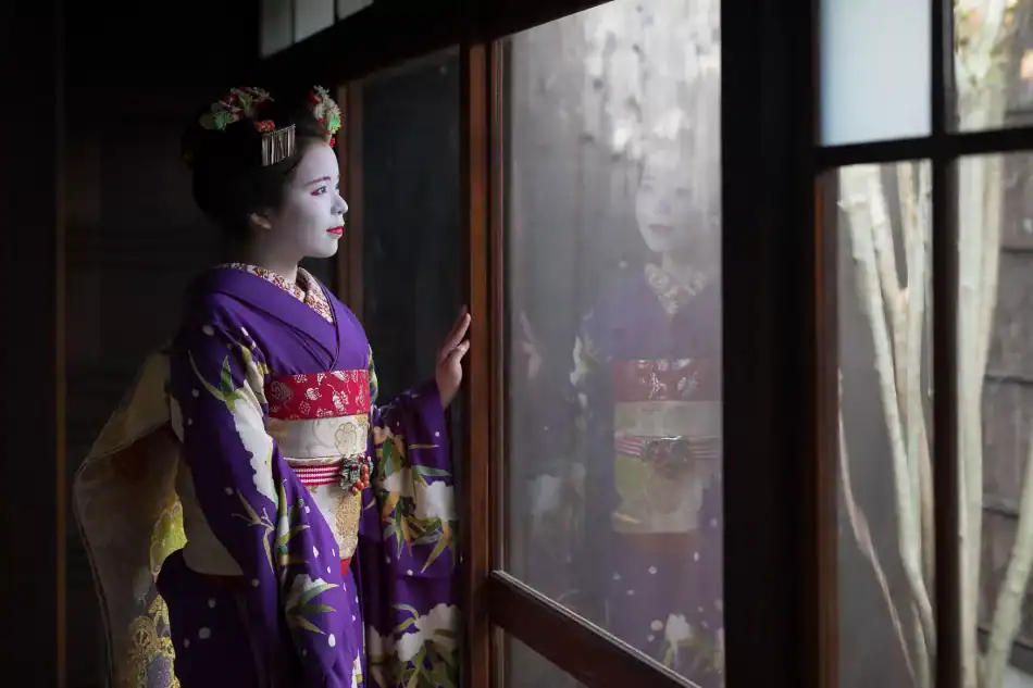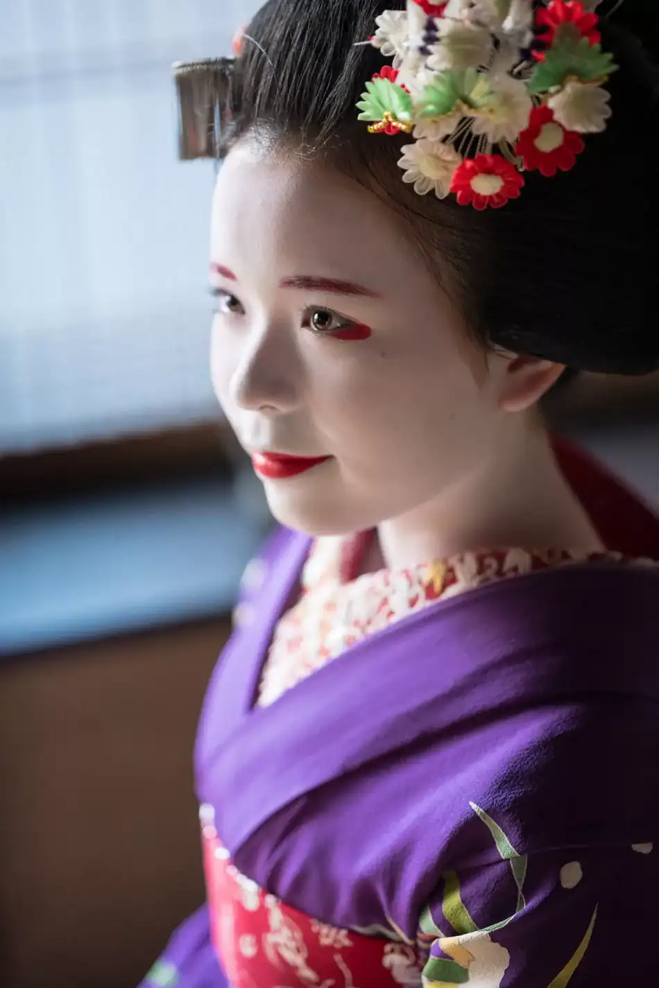 Standing at the window of the machiya, she turned her face ever so slightly, letting the diffused sunlight gather in her eyes. When she moved, she flowed like water, as if her body was formless beneath the layers of her purple furisode. The train of her kimono spread at her feet like a fan; this too was not a mere coincidence, but a seemingly effortless attention to her appearance and posture. This was my first personal interaction with a Kyoto geisha, and without saying a word, she had already taught me volumes.