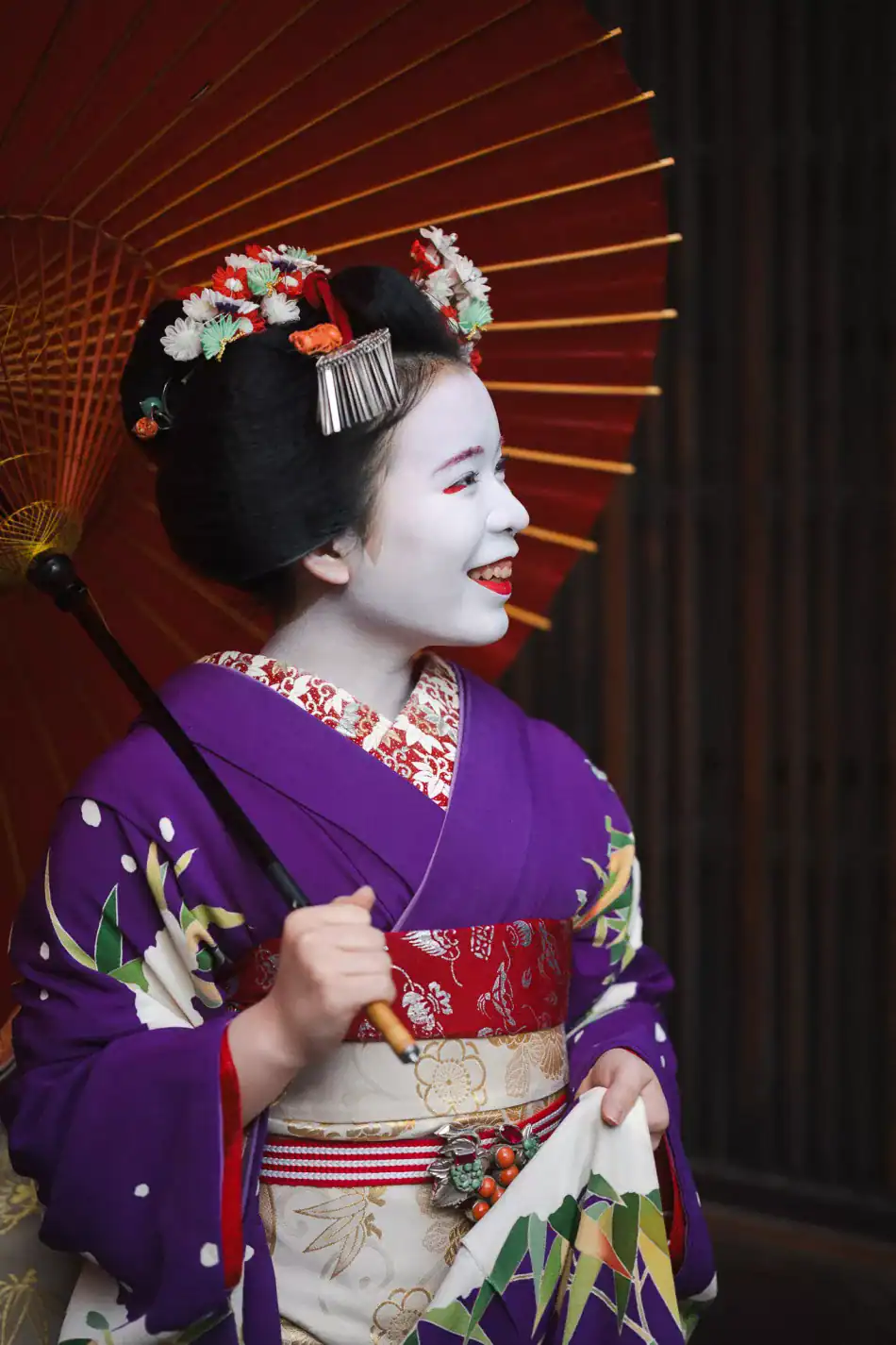 Kyoto’s geisha culture is the most famous, but working geisha still exist in several cities in Japan, including neighborhoods of Tokyo, Kanazawa, Niigata, and Morioka, to name a few. Kyoto maiko are unique in the rigor of the apprenticeship structure. The experience of Kyoto maiko can be gauged by their hairstyles, clothing, and accessories, which tend to become more subdued and elegant as they approach graduation into full-fledged geisha. Kyoto maiko also live in an okiya during their training period, a requirement that is not as strictly enforced in other parts of the country.